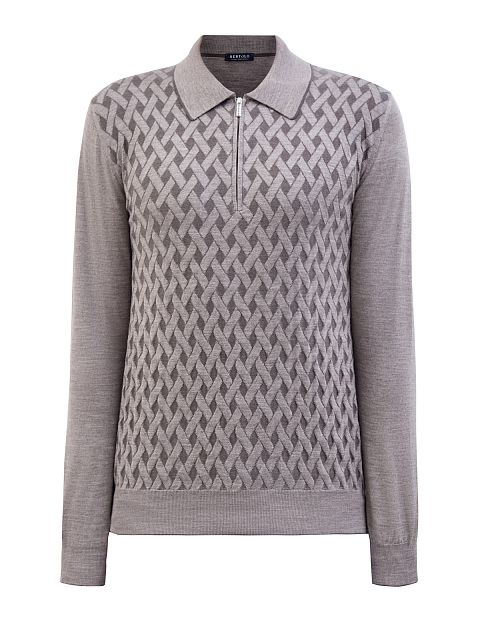 Лаконичный джемпер-поло от Bertolo создан вручную из тонкой шерсти и шелка. Благодаря уникальным свойствам натуральных материалов модель поддерживает температуру тела на оптимальном уровне и сохраняет ощущение комфорта. Геометрический узор в технике интарсии вносит расслабленный штрих в повседневный образ. Детали: эластичная отделка кромок, отложной ворот, застежка на молнию с брендированным пуллером.