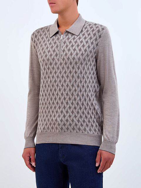 Джемпер-поло из тонкой шерсти и шелка с интарсийным узором
