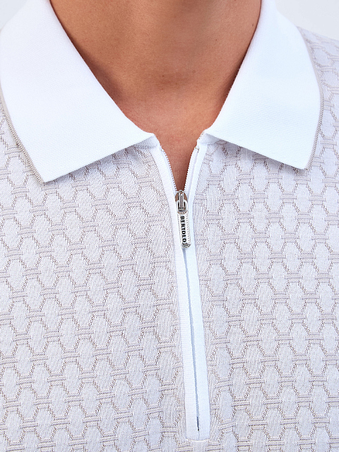 Джемпер-поло из хлопка и шелка с вязаным узором и окантовкой
