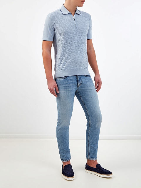 Джемпер-поло из хлопковой пряжи с узором в тон