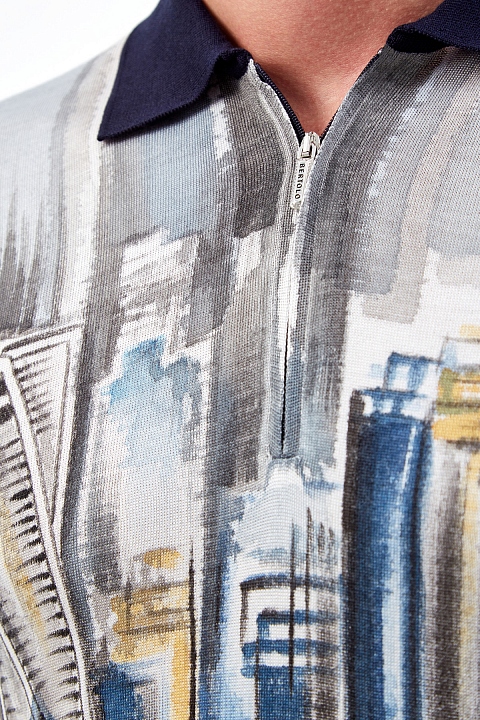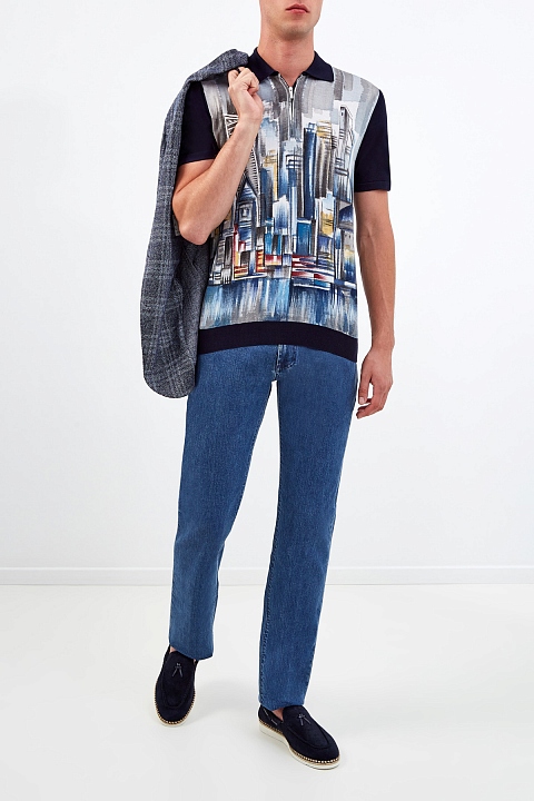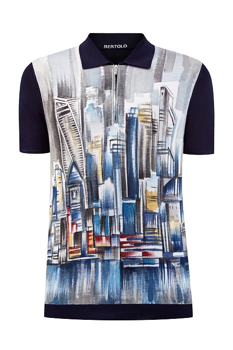Мужской джемпер-поло от Bertolo Cashmere полностью выполнен из шелковой пряжи в густом оттенке ночного неба. Особенностью модели стал культовый акварельный принт, который подчеркивает фирменную эстетику бренда. Изделие традиционного кроя с классическим отложным воротником и застежкой-молнией. Кромки дополнены окантовкой в рубчик для посадки по фигуре. Сделано в Италии.