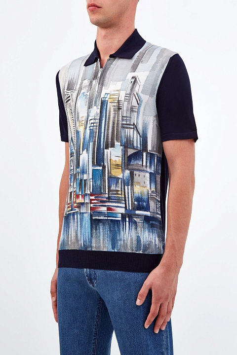 Шелковый джемпер-поло с акварельным принтом