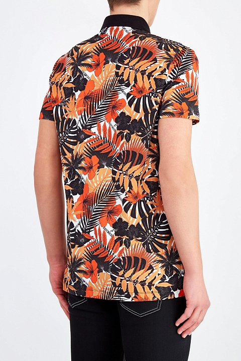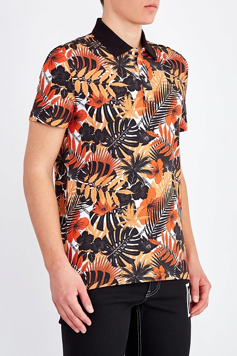 Футболка-поло с ярким лиственным принтом и однотонным воротником