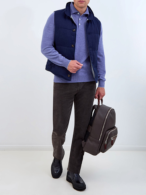 Лаконичный мужской джемпер от Brunello Cucinelli выполнен из мягкой пряжи на основе премиального кашемира. Классическая модель в васильковом оттенке дополнена отложным воротником с застежкой на перламутровые пуговицы. Детали: эластичная отделка кромок в английскую резинку, длинные рукава, слегка облегающий крой. Сделано в Италии.