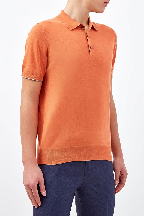 Однотонный мужской джемпер-поло от Brunello Cucinelli создан из мягкой хлопковой пряжи в одно сложение нити. Классический крой и однотонное цветовое исполнение позволяют модели стать неотъемлемой частью базового гардероба, а контрастная окантовка на рукавах вносит в образ нотку индивидуальности. Изделие дополнено традиционным отложным воротником и застежкой на перламутровые пуговицы. Сделано в Италии.