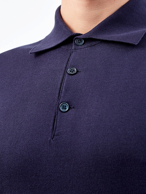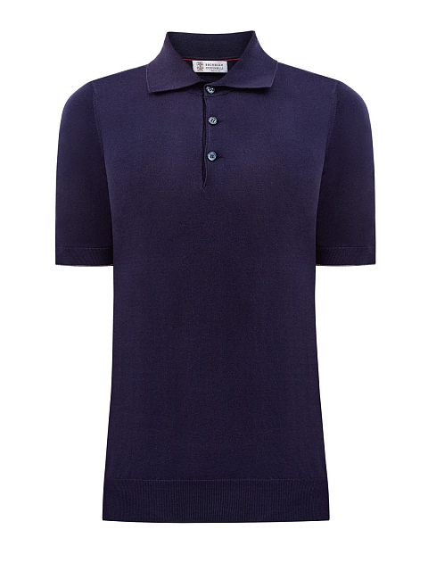 Однотонное мужское поло от Brunello Cucinelli создано из мягкой хлопковой пряжи, универсальный темно-синий оттенок подчеркивает гладкую фактуру натуральной ткани. Классический крой и сдержанное исполнение позволяют модели стать неотъемлемой частью базового гардероба. Детали: отложной ворот, короткие рукава, эластичная отделка кромок. Сделано в Италии.