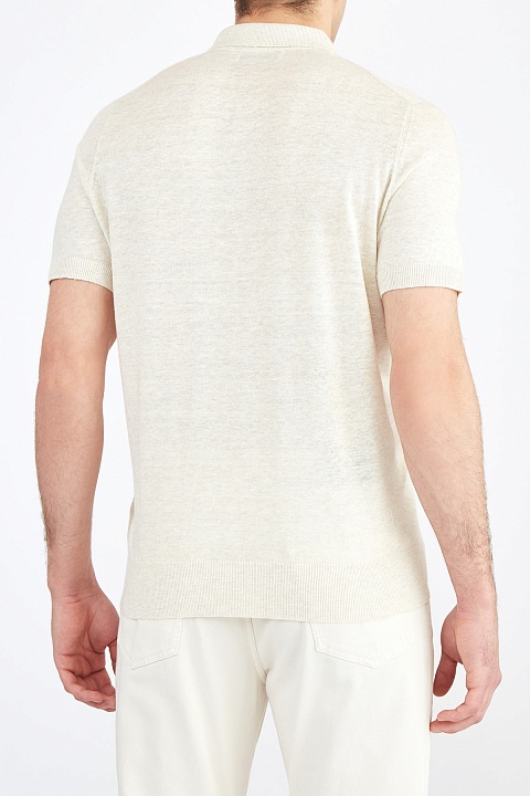 Трикотажное льняное поло с контрастной тесьмой по линии застежки