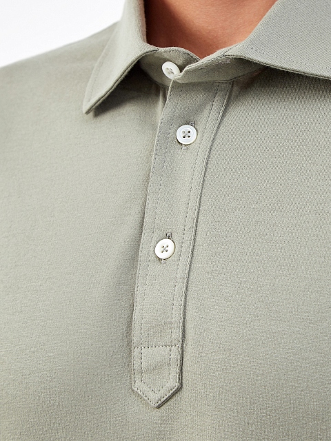 Мужское поло от Brunello Cucinelli создано из мягкого хлопка и дышащего льна. Классический крой и однотонное цветовое исполнение позволяют модели стать неотъемлемой частью базового гардероба, а контрастная окантовка вносит в образ нотку индивидуальности. Изделие дополнено традиционным отложным воротником и застежкой на перламутровые пуговицы. Сделано в Италии.