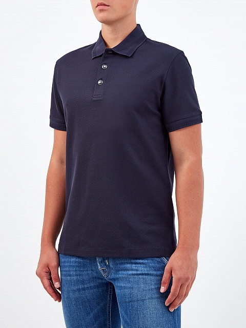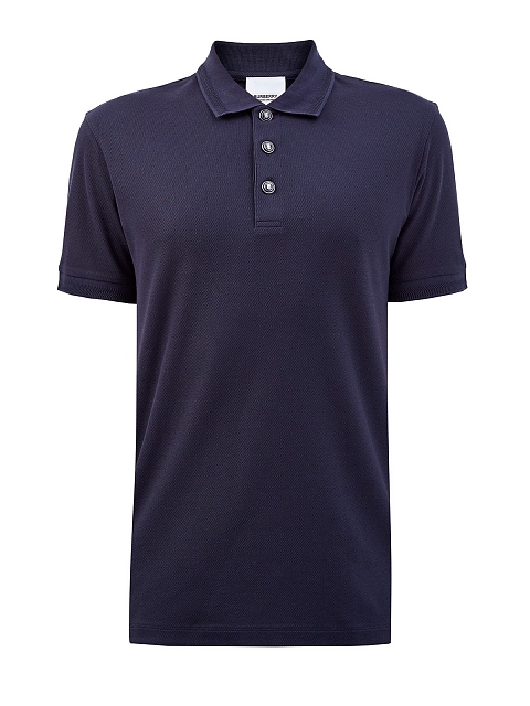 Минималистичная футболка-поло от Burberry выполнена из дышащего хлопкового пике в оттенке ночного неба. Лаконичный дизайн дополнен фактурной отделкой кромок, брендированные пуговицы из эмали подчеркивают фирменный стиль изделия. Детали: традиционный отложной ворот из плотного трикотажа, разрезы в боковых швах.