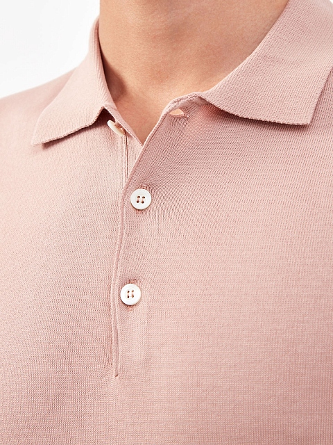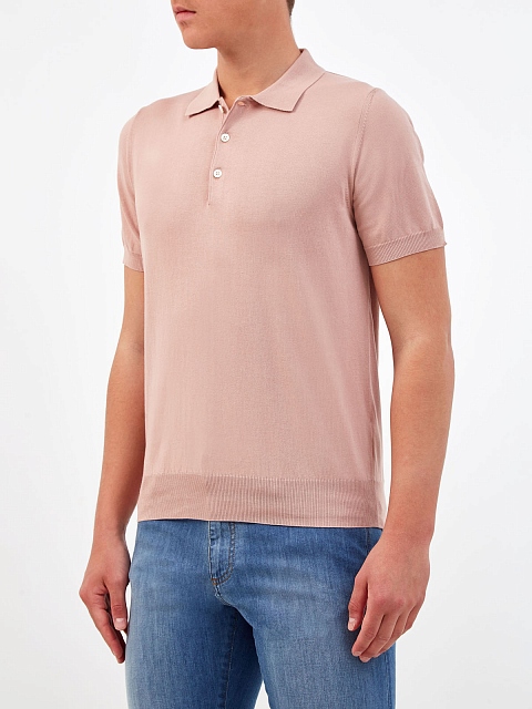 Мужской джемпер-поло в стиле casual от Canali. Модель в пастельном коралловом оттенке выполнена из дышащей и гигроскопичной хлопковой пряжи, которая идеально подходит для создания повседневных образов. Детали: короткие рукава, эластичная отделка манжет и нижнего края, отложной ворот, застежка на пуговицы из перламутра. Сделано в Италии.