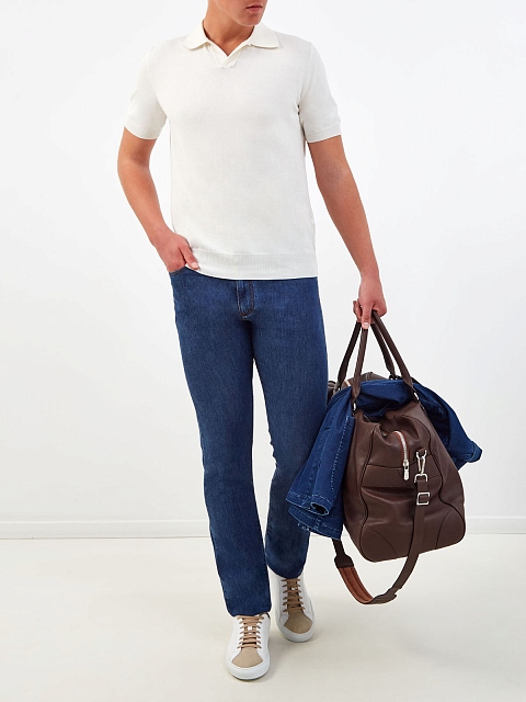 Хлопковый джемпер-поло с отложным воротом