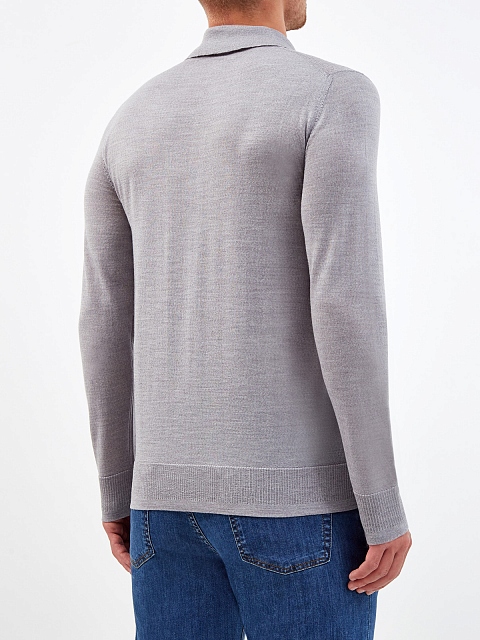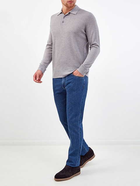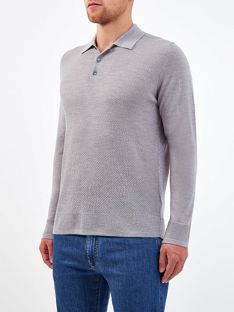 Минималистичный джемпер-поло от Canali выполнен из тонкой шерстяной пряжи. Жаккардовый паттерн на передней планке делает модель идеальной основой для создания повседневных образов в стиле casual. Отложной ворот с застежкой на пуговицы и эластичная отделка кромок в рубчик завершают лаконичный дизайн. Сделано в Италии.