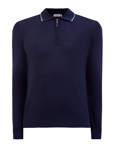 Лаконичный джемпер-поло в стиле casual от Canali выполнен в темно-синем оттенке. Для создания модели была выбрана тонкая шерстяная пряжа — идеальное решение для холодного сезона. Классический крой с застежкой на молнию с кожаным пуллером дополнен отделкой кромок в английскую резинку. Контрастная окантовка отложного ворота завершает минималистичный дизайн. Сделано в Италии.