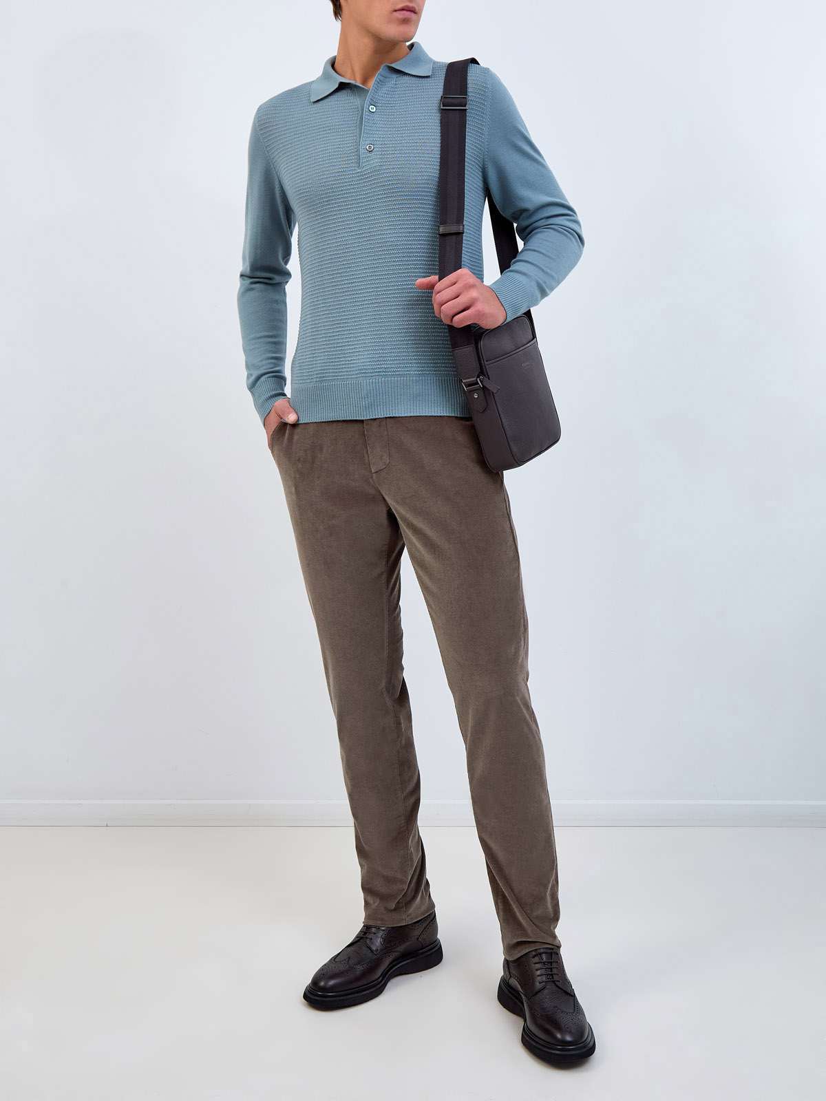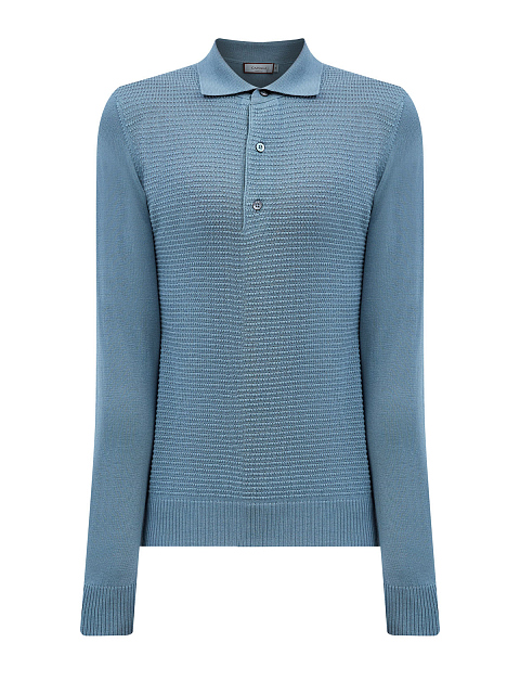Мужской джемпер-поло от Canali полностью выполнен из тонкой, но теплой шерстяной пряжи в бирюзовом оттенке. Однотонное исполнение и минималистичный дизайн делают модель идеальной для составления повседневных образов в стиле sprezzatura. Расслабленный штрих вносит вязаный узор на передней планке и отложной ворот с застежкой на пуговицы из перламутра. Детали: эластичные кромки в английскую резинку, слегка облегающий крой. Сделано в Италии.