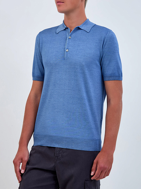 Поло из шерсти и шелка с отделкой английской вязки