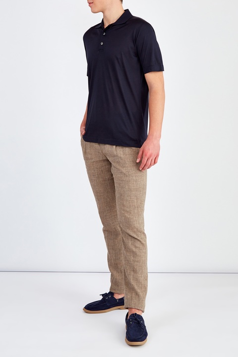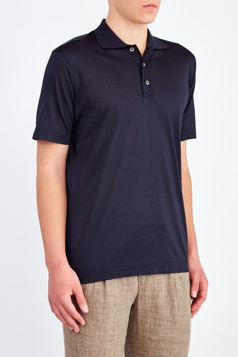 Однотонная футболка-поло в строгом стиле из чистого шелка