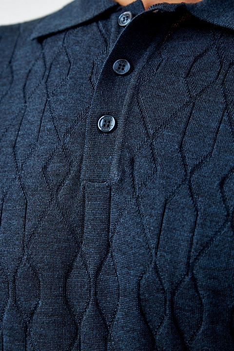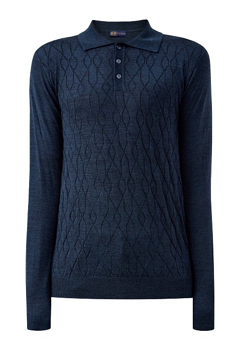 Базовый мужской джемпер-поло свободного кроя от Cudgi выполнен из шерстяной пряжи с добавлением тенсела — материала на основе волокон австралийского эвкалипта, прошедших нано-обработку. Изделие в благородном оттенке малахита дополнено отложным воротником с застежкой на пуговицы, а также эластичными кромками для комфортной посадки. Вязаный узор с эффектом тиснения завершает дизайн.