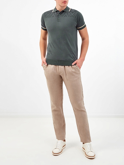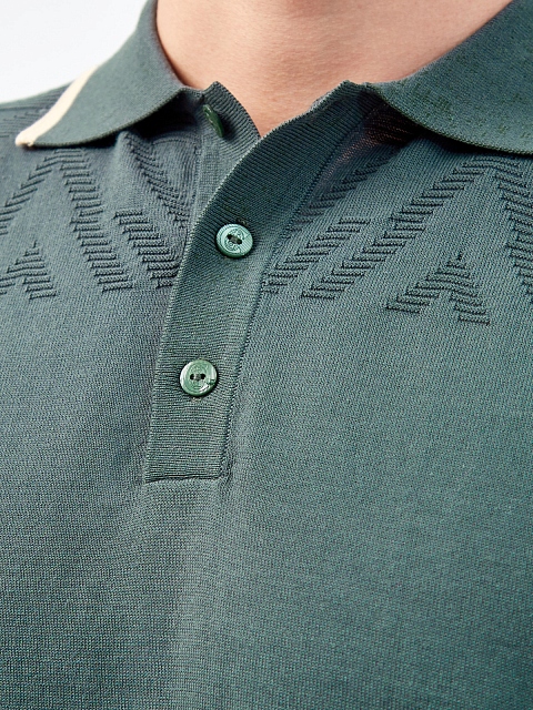 Хлопковый джемпер-поло с вязаным узором