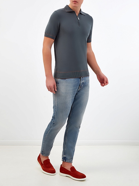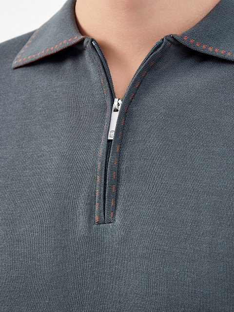 Джемпер-поло с контрастной окантовкой и застежкой на молнию