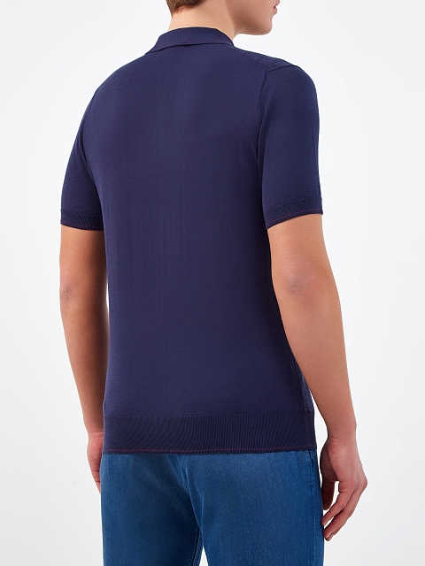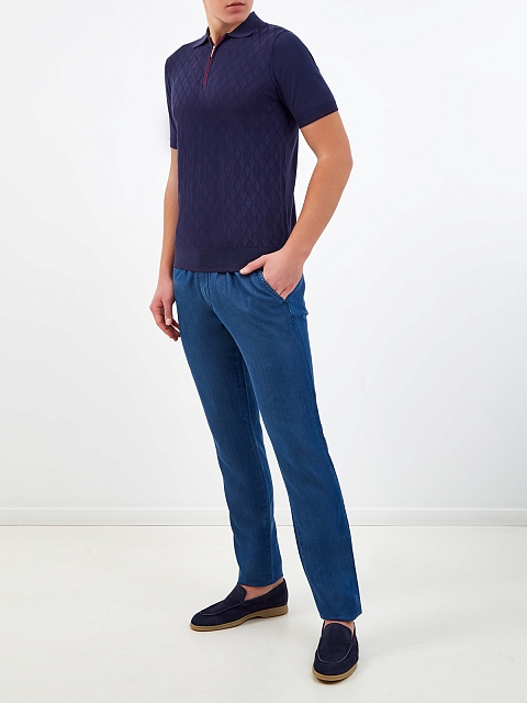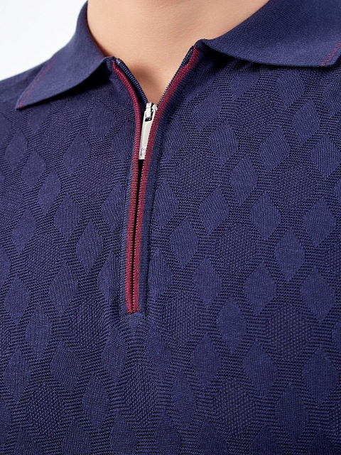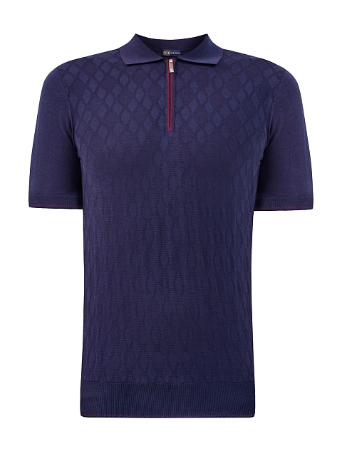 Джемпер-поло с узором в тон и контрастной окантовкой