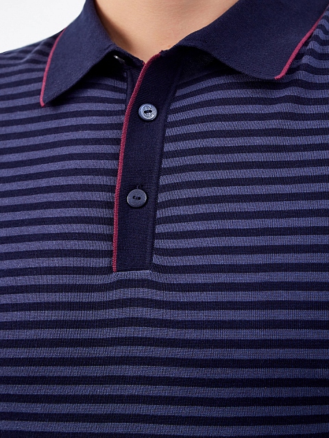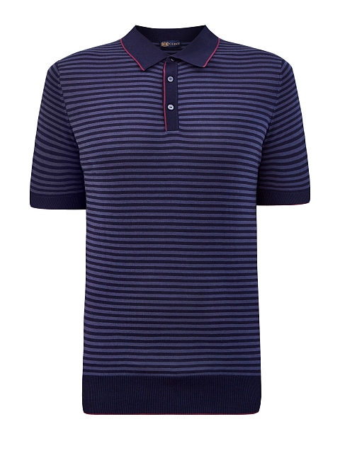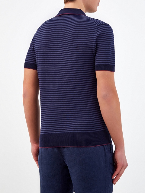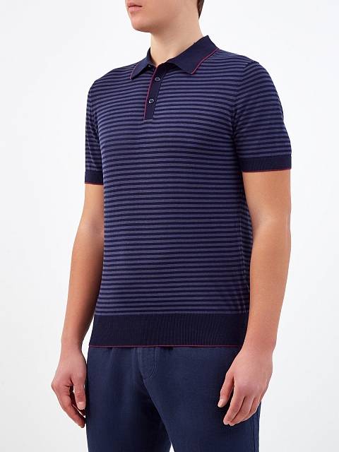 Поло из хлопка и шелка в полоску с окантовкой