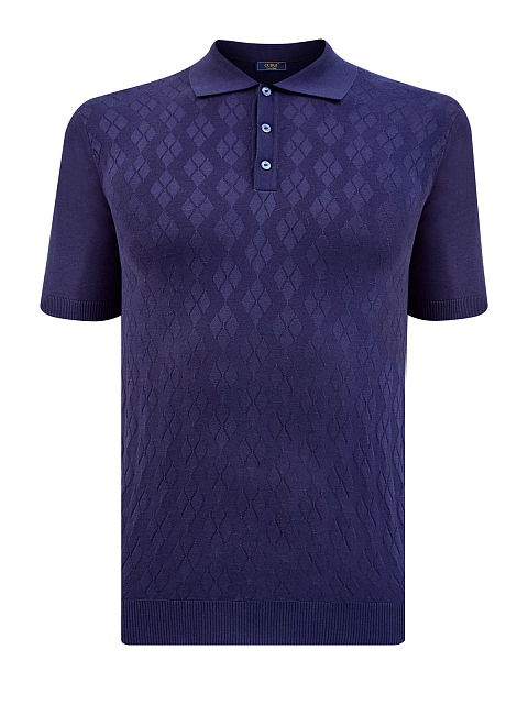 Однотонный джемпер-поло из хлопка и шелка с ромбовидным узором