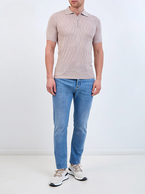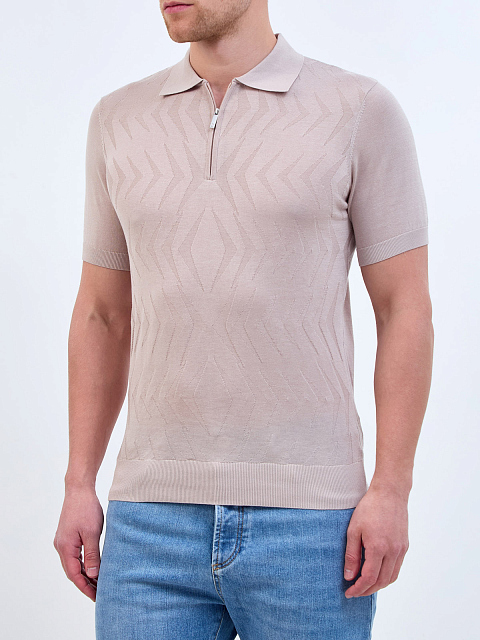 Джемпер-поло из хлопка и шелка с застежкой на молнию