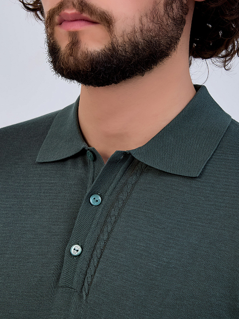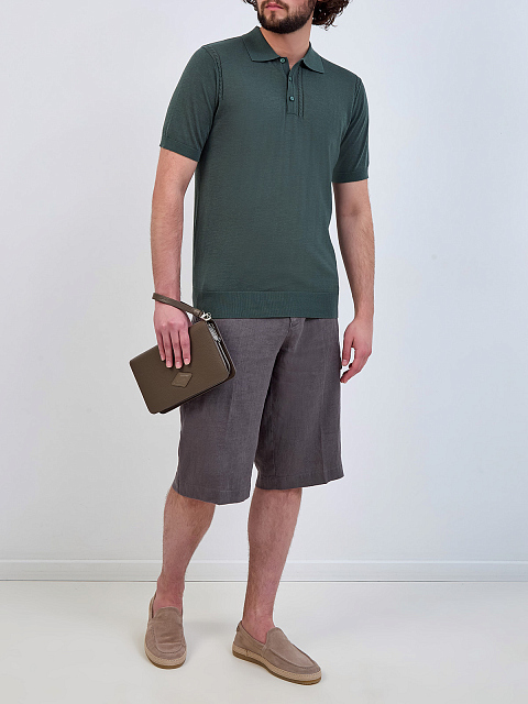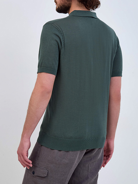 Поло из хлопка, шелка и льна с вязаными деталями в тон