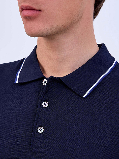 Джемпер-поло из хлопка и тенселя с контрастным кантом