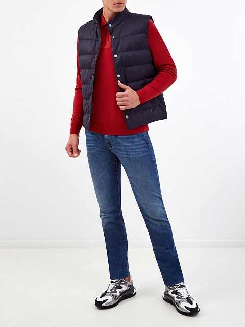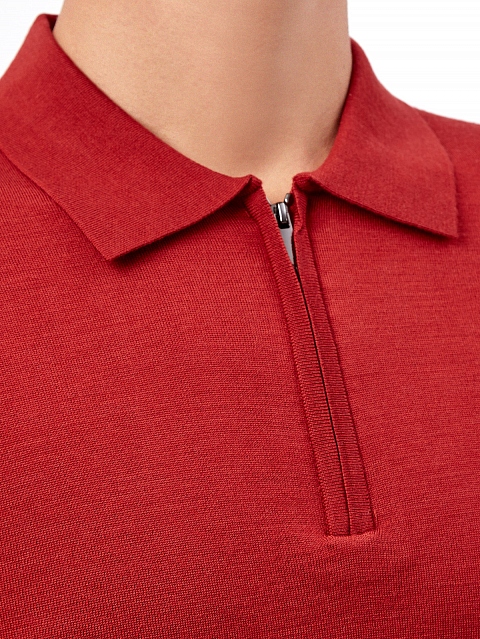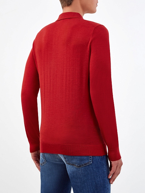 Мужской джемпер-поло от Cudgi полностью выполнен из тонкой шерстяной пряжи в насыщенном алом цвете. Длинные однородные волокна формируют гладкую поверхность, а плотное расположение петель усиливает теплоизолирующие свойства натурального материала. Модель с традиционным отложным трикотажным воротом дополнена застежкой на молнию. Отделка кромок в рубчик завершает дизайн.