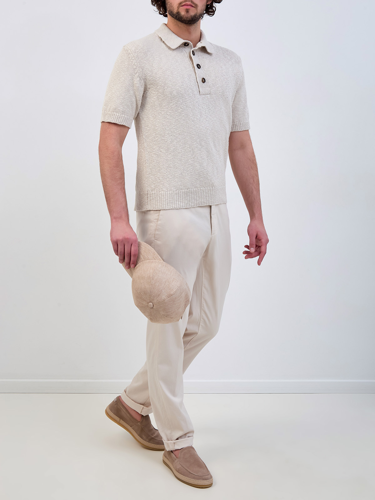 Вязаное поло в стиле leisure из фактурной хлопковой пряжи
