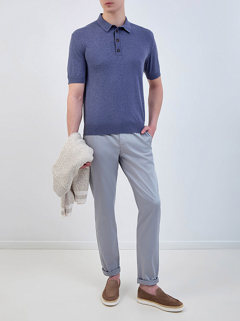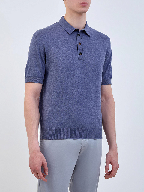 Джемпер-поло из хлопка и кашемира с застежкой на пуговицы