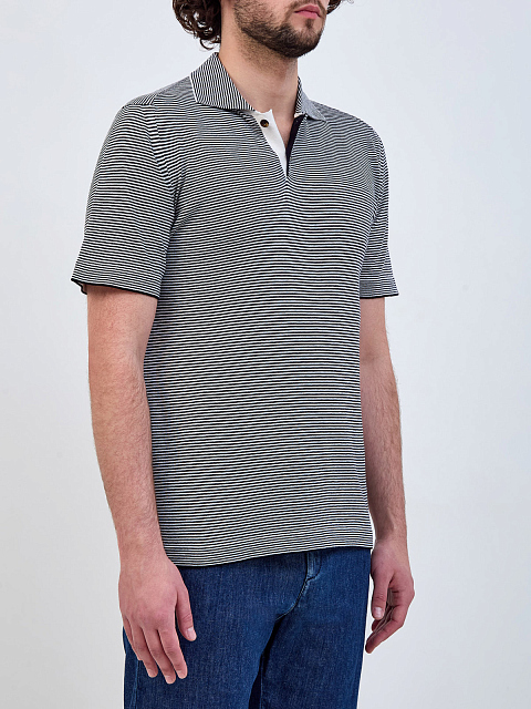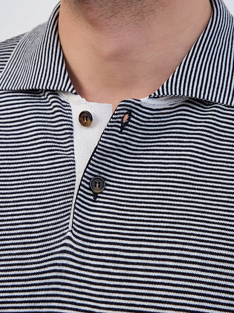 Поло Platinum из шелка и хлопка с узором в тонкую полоску