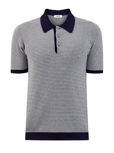 Лаконичный джемпер-поло от Gran Sasso выполнен в синей гамме. Мягкий хлопковый материал не стесняет движений и идеально подходит для летнего сезона, прядение в одно сложение нити обеспечивает оптимальный вес изделия. Вязаный узор по всей поверхности и контрастные кромки придают расслабленный штрих повседневному образу. Детали: отложной воротник, застежка на пуговицы.Сделано в Италии.