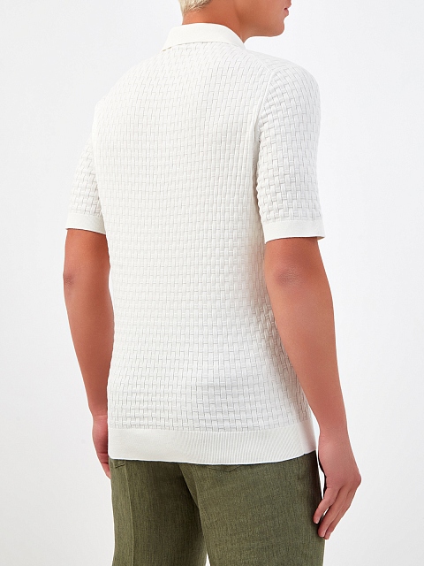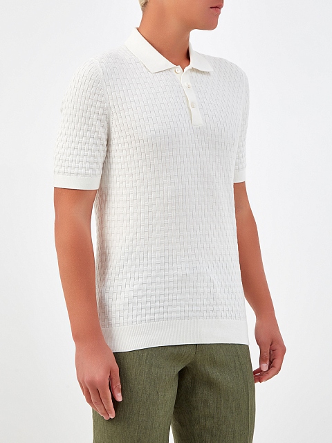Хлопковое поло фактурной вязки с застежкой на пуговицы