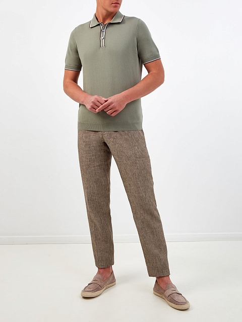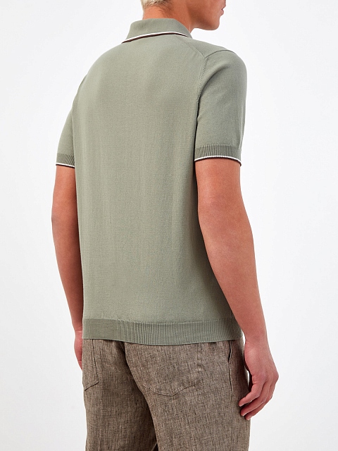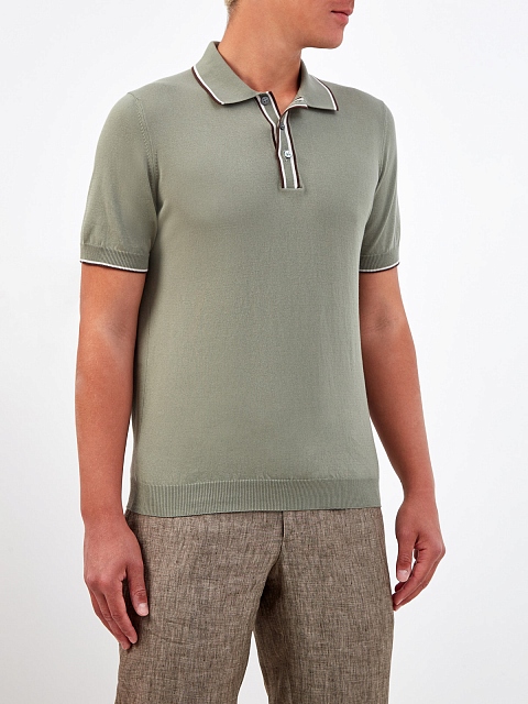 Поло из хлопковой пряжи с окантовкой и застежкой на пуговицы
