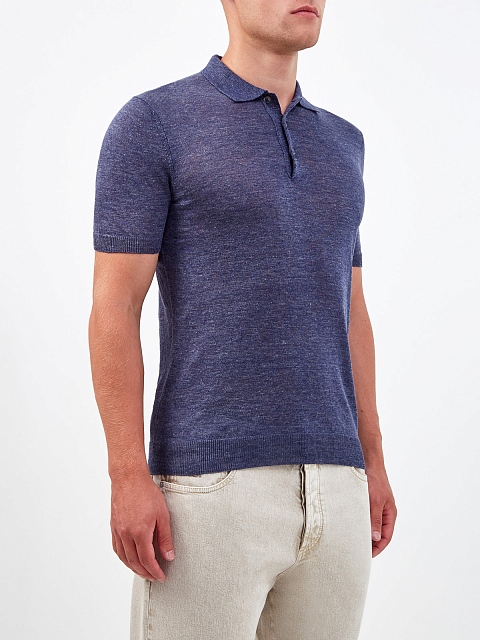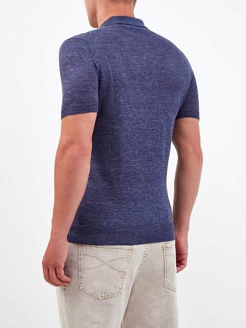 Джемпер-поло из льняной пряжи с меланжевой текстурой
