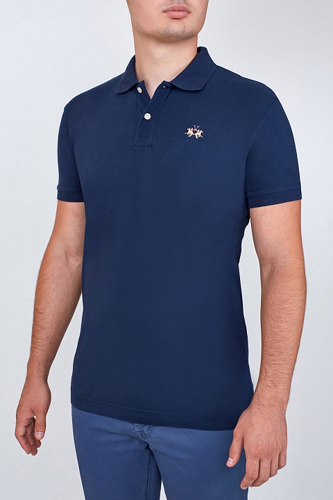 Поло из хлопкового пике с вышитым логотипом и застежкой на пуговицы