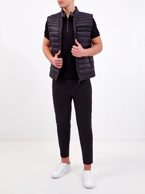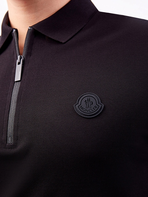 Монохромная футболка-поло от Moncler представлена в базовом черном цвете. Для создания модели был выбран классический хлопок пике с характерным переплетением волокон. Динамичный штрих — скрытая застежка на молнию. Детали: логотип бренда из фактурного силикона, отложной воротник, эластичная окантовка на рукавах, свободная посадка по фигуре.