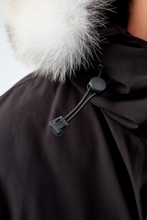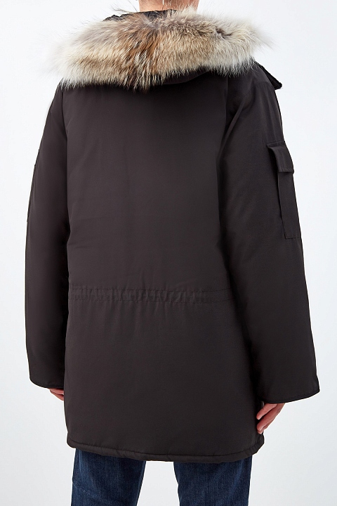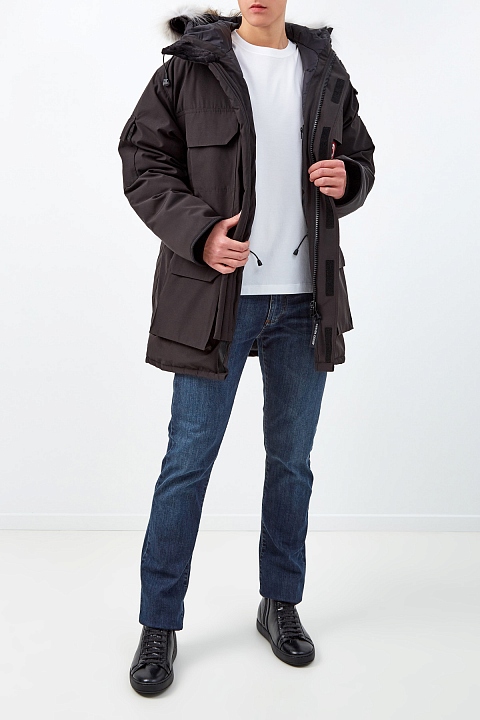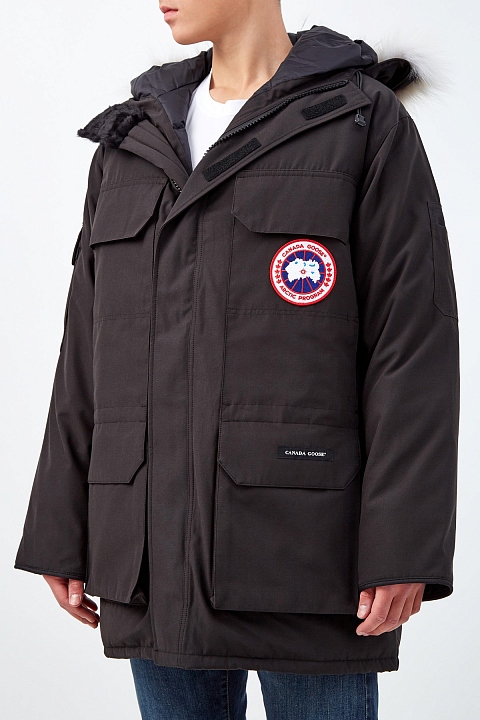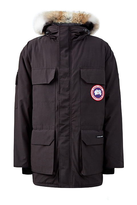 Теплая парка Expedition от Canada Goose рассчитана на экстремально низкую температуру −30℃ и ниже. Она была разработана специально для ученых на станции МакМердо в Антарктиде. Объемный крой подходит для многослойных образов. Модель обеспечивает максимальную защиту от ветра: по краю капюшона и на рукавах предусмотрены жесткие регулируемые вставки, а внутренняя часть оснащена нескользящим прилегающим поясом на кнопках, который можно спрятать в специальный отсек по желанию. Съемная окантовка из меха койота дополнительно защищает лицо. Детали: кулиска на талии, лента для фиксации на спинке, два внутренних и шесть внешних карманов. Сделано в Канаде.