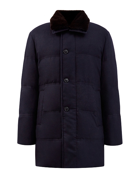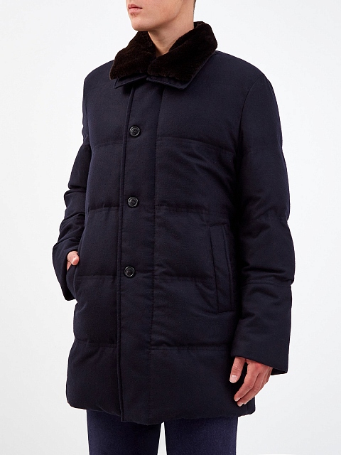 Пуховик из плотной шерстяной фланели с мехом бобра