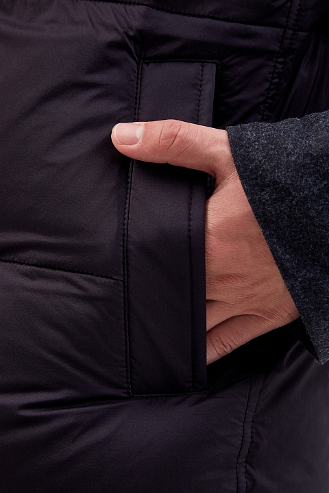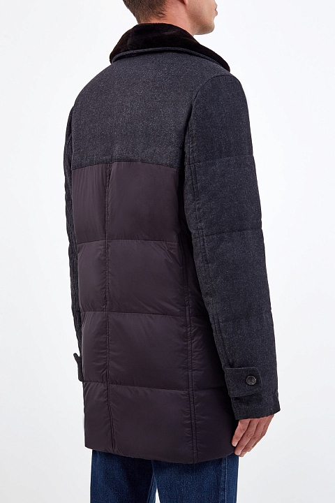 Пуховик из нейлона и шерсти со съемным воротом из меха бобра