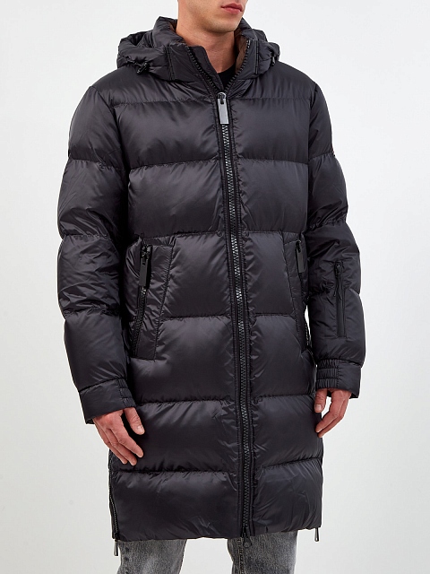Пуховик из влагозащитного стеганого нейлона с разрезами на молниях