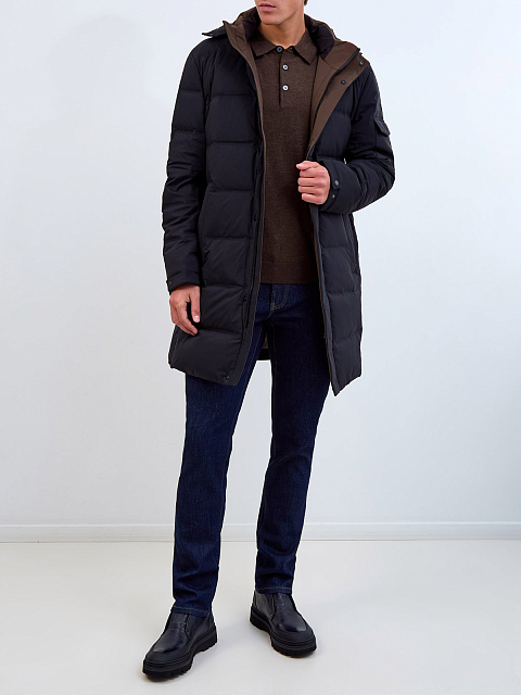 Пуховик из стеганого влагозащитного нейлона со съемным капюшоном