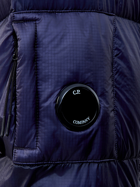 Объемный мужской пуховик D.D. Shell от C.P. Company отличается дизайном в стиле urban и инновационным окрашиванием в готовом виде. Модель из водоотталкивающего стеганого нейлона Ripstop дополнена глубоким капюшоном, утеплителем из гусиного пуха и прорезными карманами. Застежка на молнию с двойным пуллером и фирменная линза завершают дизайн.