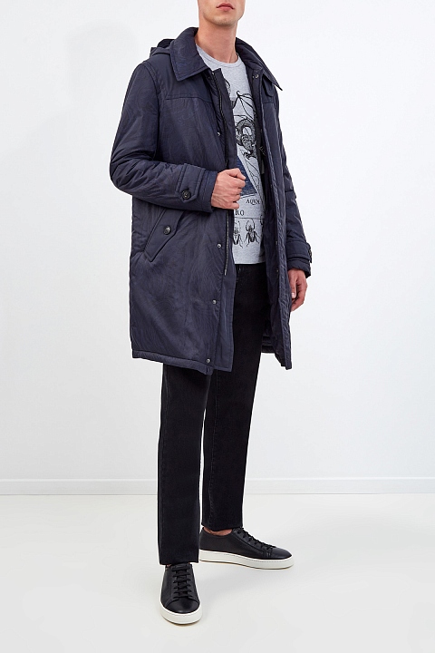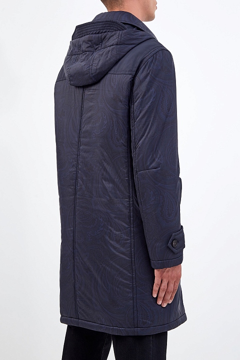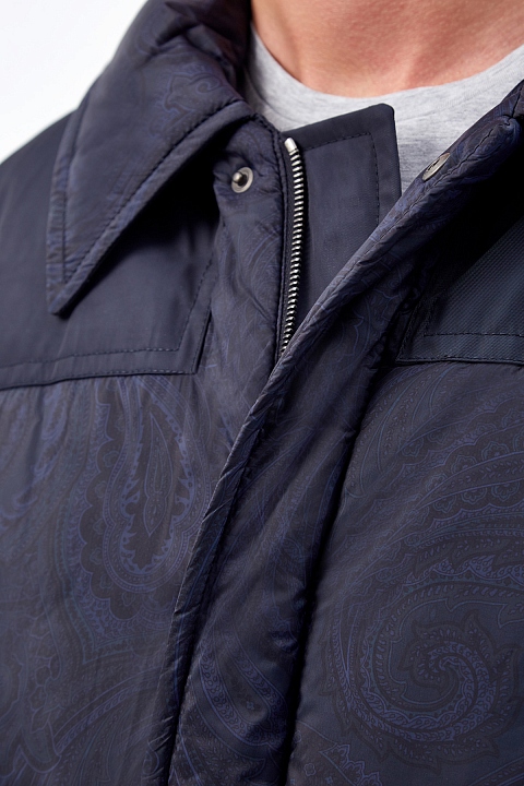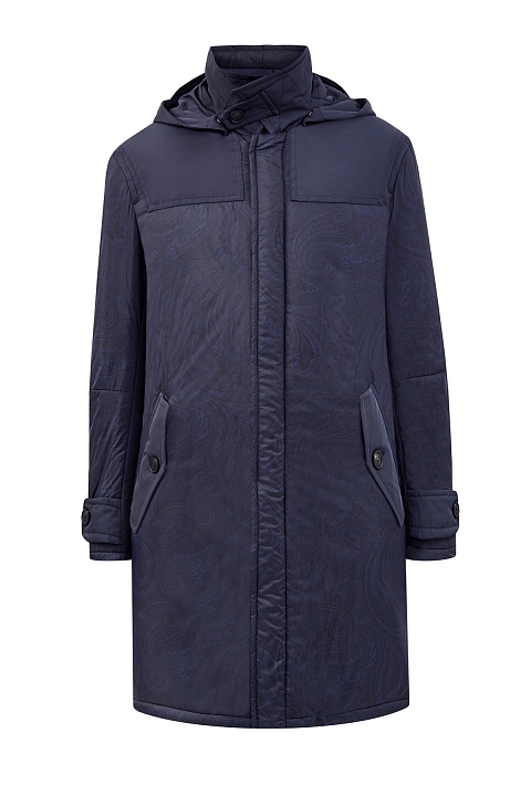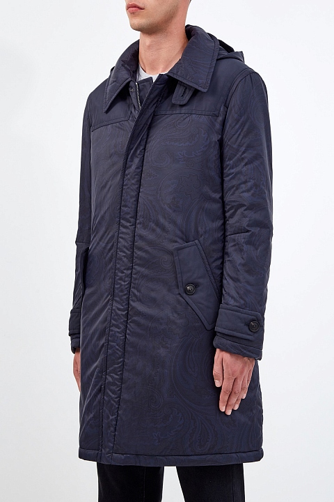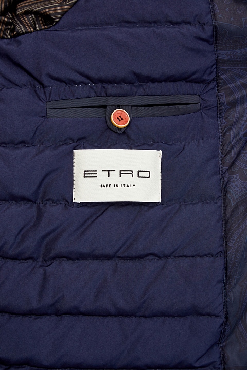 Удлиненный пуховик от Etro выполнен из водонепроницаемого нейлона — невесомой, и в то же время прочной ткани. Наполнитель из пуха и пера создает дополнительный утепляющий слой и делает модель особенно актуальной в зимний сезон. Универсальная длина позволяет носить изделие в том числе и с пиджаками. Детали: съемный капюшон с козырьком, однотонные элементы отделки, двойная линия застежки. Сделано в Италии.