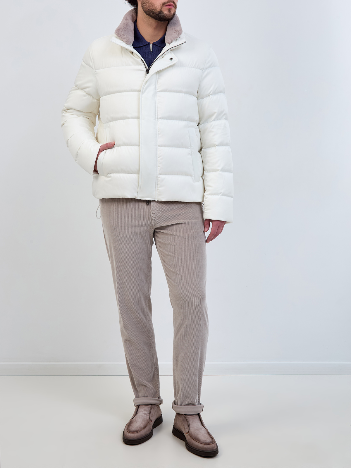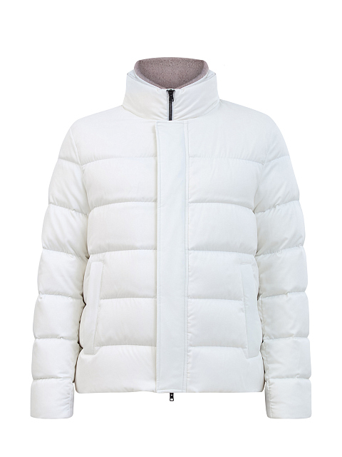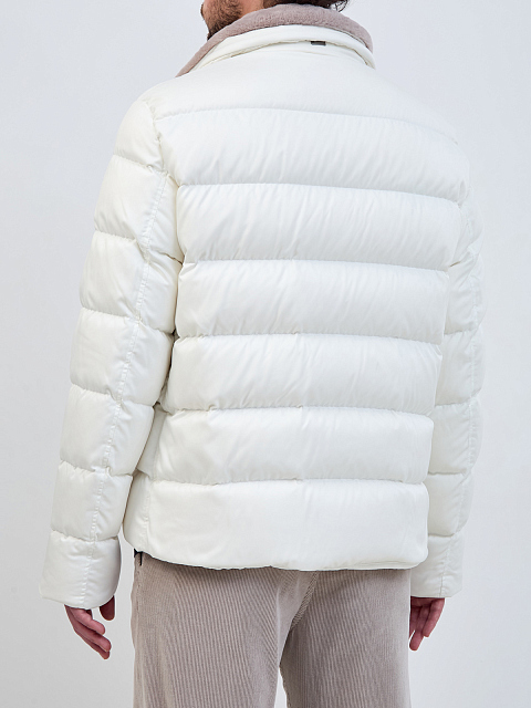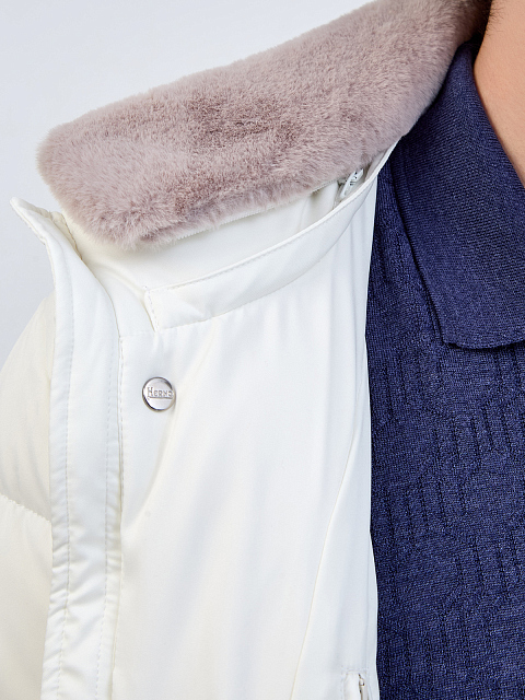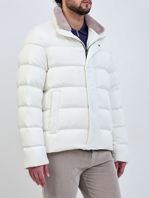 Стеганый пуховик со съемной вставкой из эко-меха