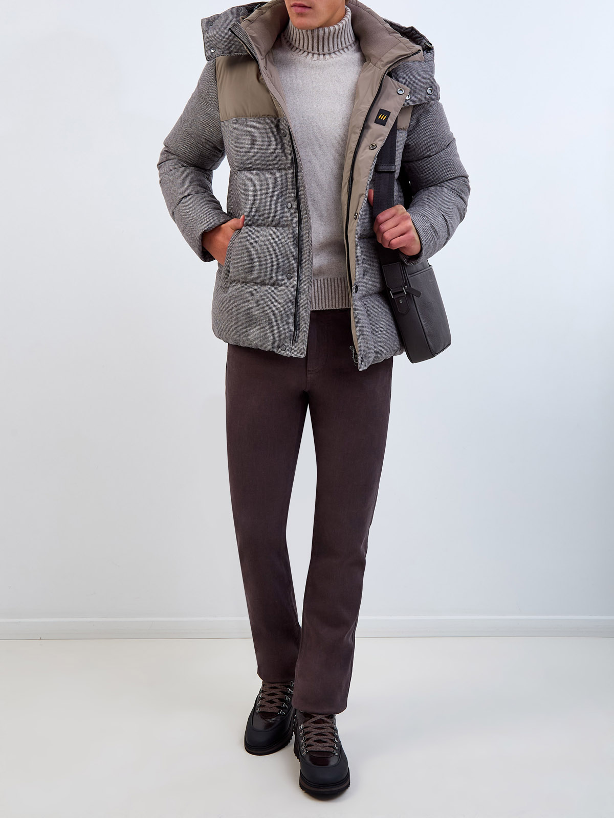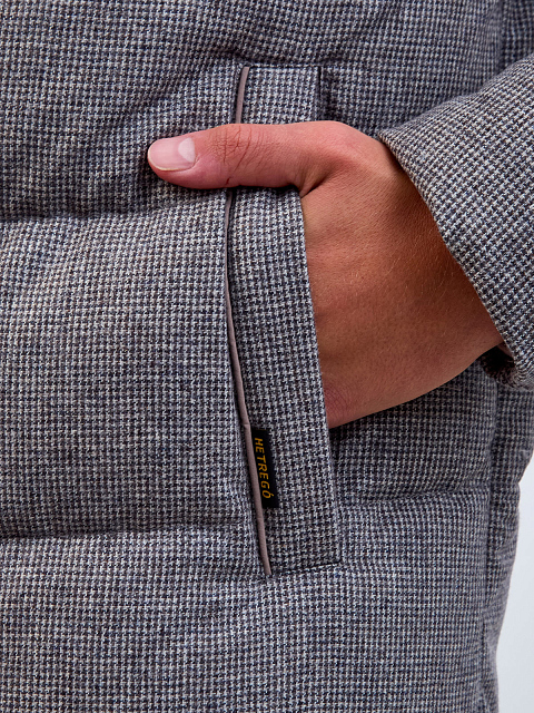 Комбинированный мужской пуховик в городском стиле от Hetrego станет универсальным выбором для составления повседневных образов. Модель с горизонтальной стежкой выполнена из плотной влагозащитной шерсти с узором «гусиная лапка», набивка из отборного пуха и пера сохраняет максимальный комфорт в холодное время года. Вставки из матового нейлона и съемный регулируемый капюшон завершают дизайн. Детали: прорезные карманы, двойная линия застежки на молнию и кнопки, контрастная внутренняя окантовка.