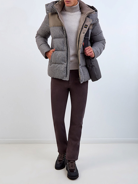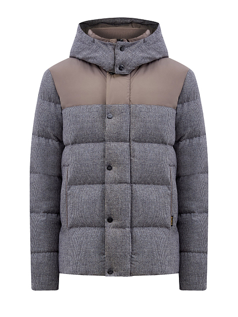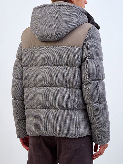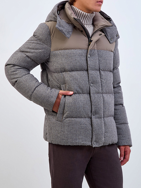 Комбинированный пуховик из шерсти и матового нейлона с капюшоном