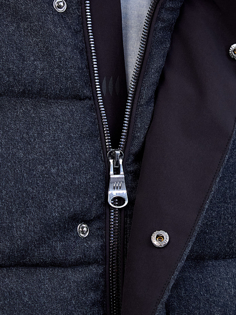 Пуховик из плотной стеганой шерсти со съемным капюшоном